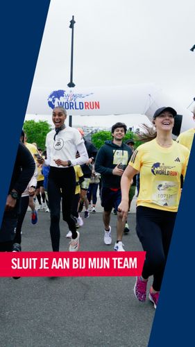 Vertel iedereen over jouw team! Plaats je socials vol met je favoriete Wings for Life World Run foto's en video's. Download ze en deel ze maar!